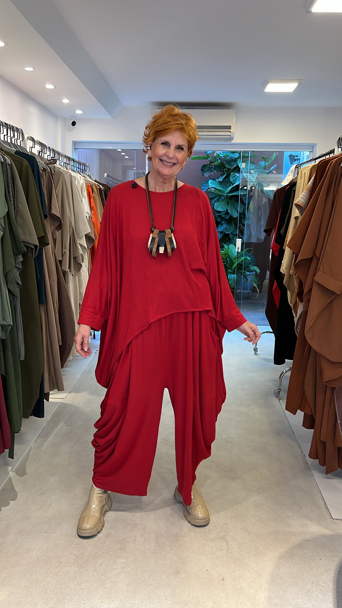 Blusa Descontruída em viscolinho, com modelagem ampla e mangas super amplas estilo capa, que remetem ao design oriental.